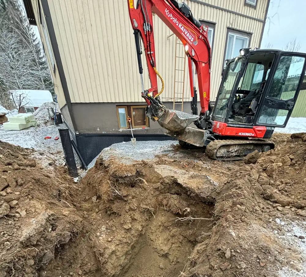 Hoidamme kiinteistöjen, pientalojen ja rivitaloyhtiöiden salaojitukset ja sadevesijärjestelmät.